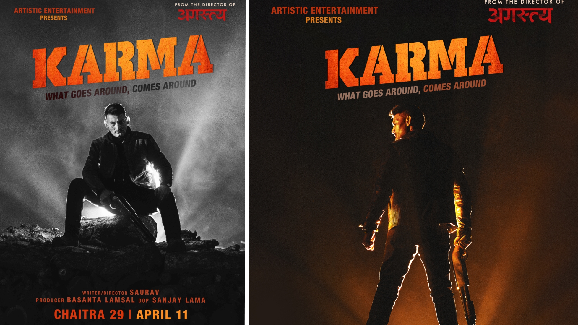 सिनेसुत्र, बिराटनगर-  सिनेमा ‘कर्मा’को फस्टलुक पोस्टर सार्वजनिक भएको छ । निर्माणपक्षले सिनेमाका मुख्य कलाकारलाई फिचर्ड गर्दै दुईवटा पोस्टर सार्वजनिक गरेको हो ।पोस्टरमा विपीन कार्की छन् । उनलाई ब्ल्याक जिन्स र फिट बडीमा देखाइएको छ । हातमा सर्ट गन बोकेका उनको लुक्सअनुसार उनी बदलाको भावमा छन् ।गेटअप, ड्रेसअप, फेसियल लुक्स र हातमा रहेका सर्ट गनले उनी एक्सन भूमिकामा रहेको प्रष्ट देखिन्छ । कलरसँग खेलिएको पोस्टरले पनि एक्सनको संकेत गर्छ । पोस्टरमा रहेको स्लोगन ‘ह्वाट गोज अराउन्ड, कम्स अराउन्ड’ले पनि बदलाको मुडमा मुख्य पात्र रहेको पुष्टि गर्छ । स्लोगनले ‘कर्मा’ सिचुएसनल एक्सन भएको सामान्य अनुमान लगाउन सकिन्छ । यदि, निर्माणपक्षले गरेको दाबी र पोस्टरले गरेको संकेतअनुसार सिनेमा एक्सन जनराको हो भने यो जनरामा विपीन पहिलोपटक देखिनेछन् । यसले नै दर्शकमा रोमाञ्चकता थप्नेछ ।‘कर्मा’लाई ‘अगस्त्य’ फेम्ड निर्देशक सौरभ चौधरीले निर्देशन गरिरहेका छन् ।