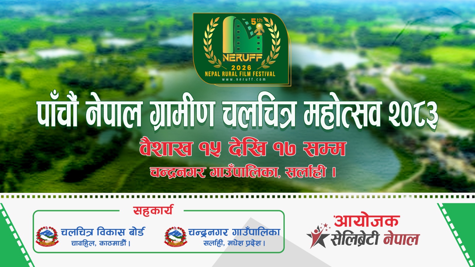 सिनेसुत्र, बिराटनगर- ‘नेपाल ग्रामीण चलचित्र महोत्सव’ (NERUFF) को पाँचौँ संस्करण आगामी वर्षको बैशाख १५ देखि १७ गतेसम्म आयोजना हुने भएको छ। नेपाली मौलिक ग्रामीण कथावस्तुमा आधारित चलचित्रलाई प्रोत्साहन गर्ने उद्देश्यले सञ्चालन हुँदै आएको यो महोत्सव यसपटक मधेश प्रदेशको सर्लाही जिल्ला, चन्द्रनगर गाउँपालिकामा आयोजना गरिने भएको छ । महोत्सव आयोजनाबारे चन्द्रनगर गाउँपालिकाका अध्यक्ष राजकुमार महतो र आयोजक संस्था सेलिब्रेटी नेपाल प्रतिष्ठानका अध्यक्ष रघुनाथ सापकोटाबीच विस्तृत छलफल भई तयारी कार्य अघि बढिसकेको छ।